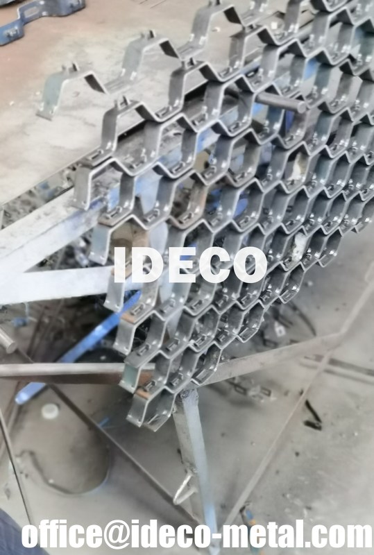 Hexsteel is a an unique honeycombed steel designed to provide excellent retention and reinforcement of thin wall refractories and fully complements dense hydraulic and chemically bonded refractories in resisting erosionيتم تصنيع الألواح من شرائط الصلب المشكلة مع المسامير البارزة المشددة بطريقة تضمن صلابة عالية لللوحة حتى بعد التدحرج.