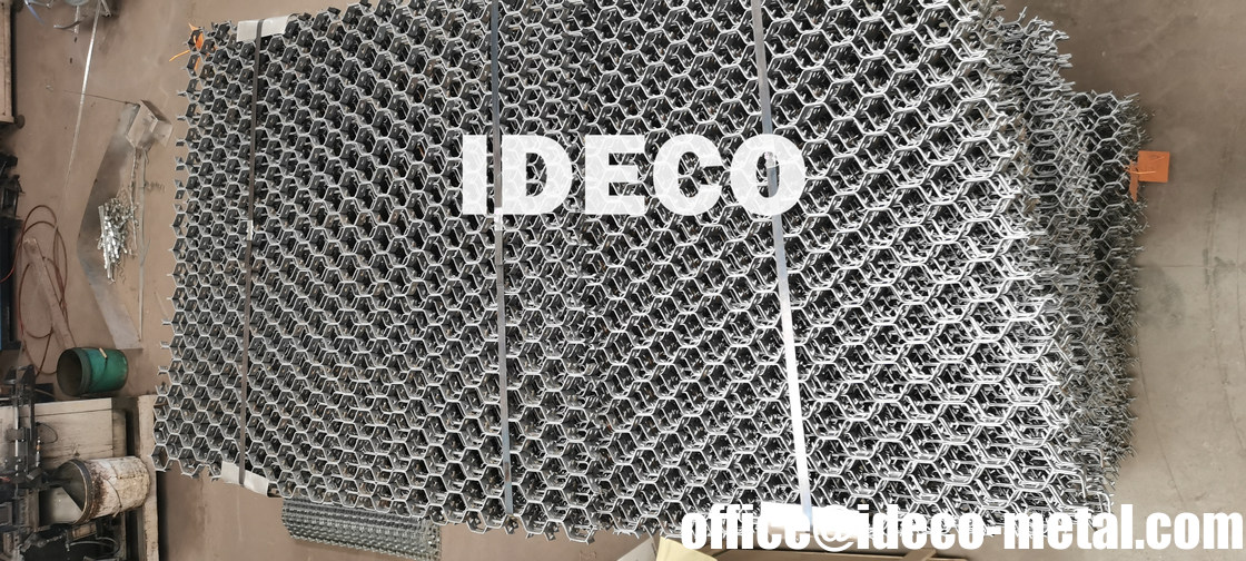 Hexsteel هو فولاذ فريد على شكل خلية نحل مصمم لتوفير احتفاظ وتعزيز ممتاز للبطانات الحرارية الرقيقة ويكمل تمامًا البطانات الكثيفة الهيدروليكية والملتصقة كيميائيًا في مقاومة التآكل. الألواح مصنوعة من شرائط فولاذية مشكلة بأشواك بارزة مثبتة بطريقة تضمن صلابة عالية للوحة حتى بعد اللف.