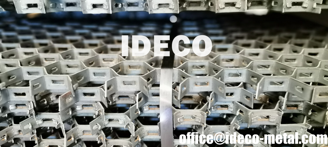 Hexsteel is a an unique honeycombed steel designed to provide excellent retention and reinforcement of thin wall refractories and fully complements dense hydraulic and chemically bonded refractories in resisting erosionيتم تصنيع الألواح من شرائط الصلب المشكلة مع المسامير البارزة المشددة بطريقة تضمن صلابة عالية لللوحة حتى بعد التدحرج.
